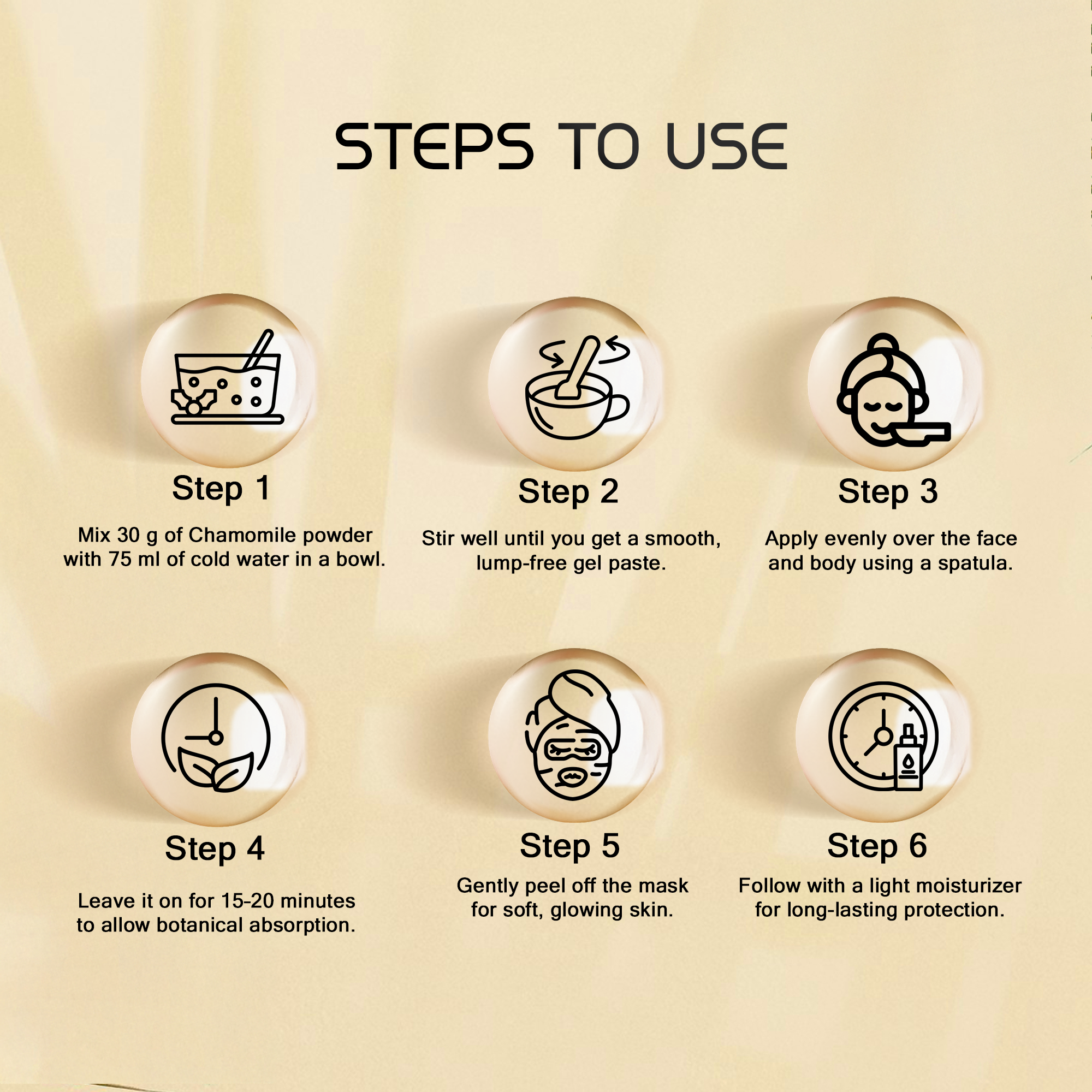 Usage Direction: Mix 30 gm of Bidal powder with 75 ml of cold water, stirring briskly until a smooth gel forms. Apply evenly to face and body, avoiding the eye area. Leave on for 15–20 minutes to allow botanical absorption. Peel off gently and follow with SPF 30+++ for lasting protection.